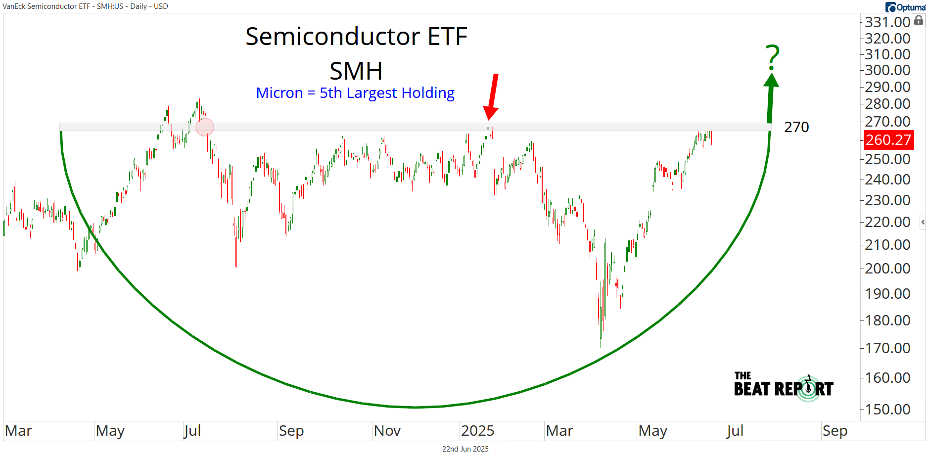 Micron is the 5th-largest holding, so rallying after Wednesday's earnings event could spark a fresh leg higher in the industry ETF.