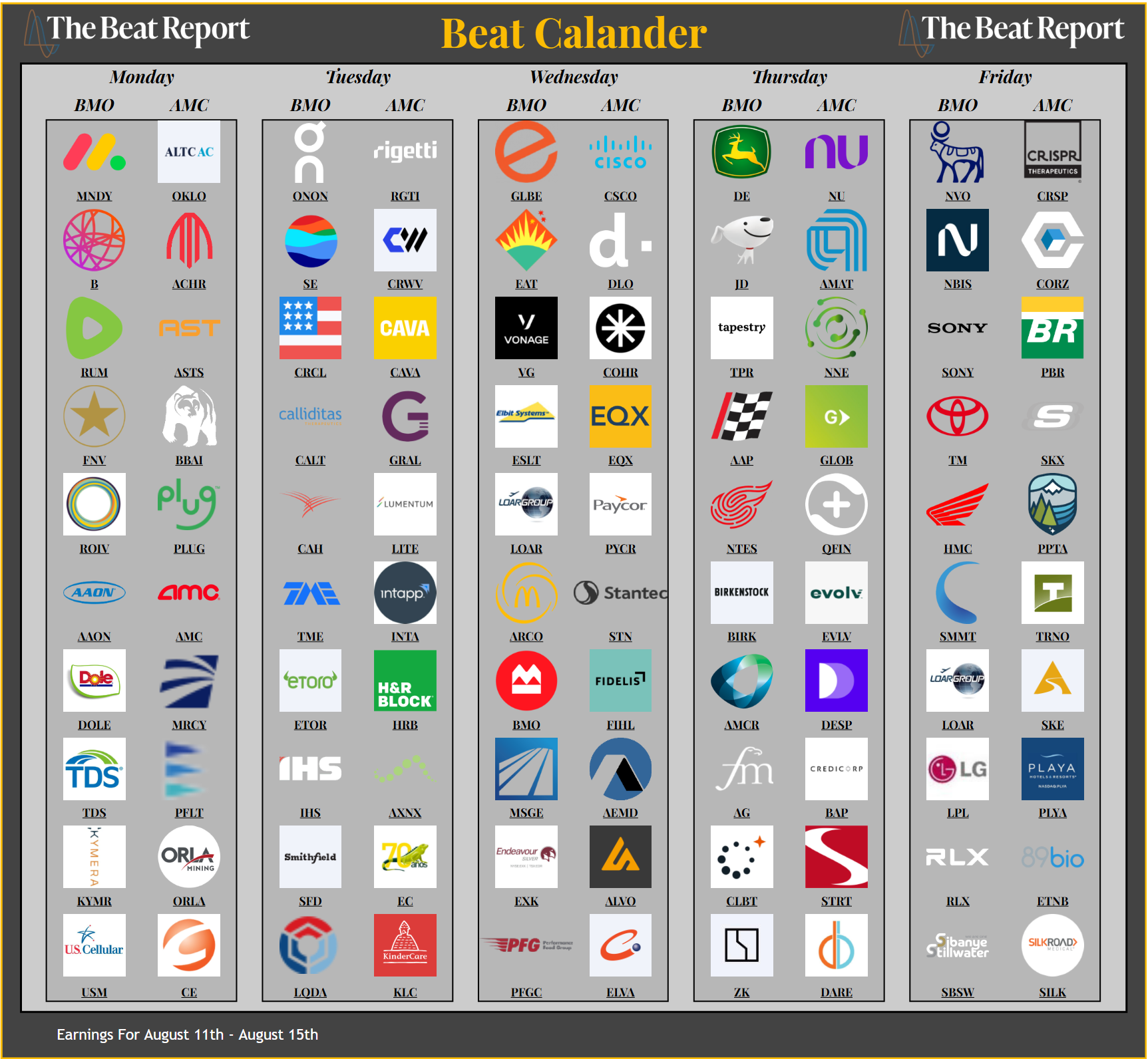 The reports we'll be monitoring closest are Sea Ltd. $SE, John Deere $DE, and Cisco Systems $CSCO.
