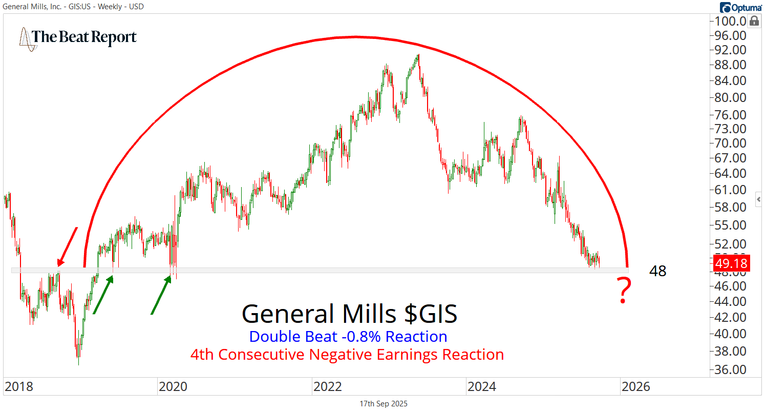 GIS had its 4th consecutive negative earnings reaction π»