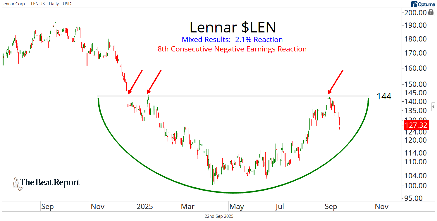 LEN suffered its 8th consecutive negative earnings reaction π»