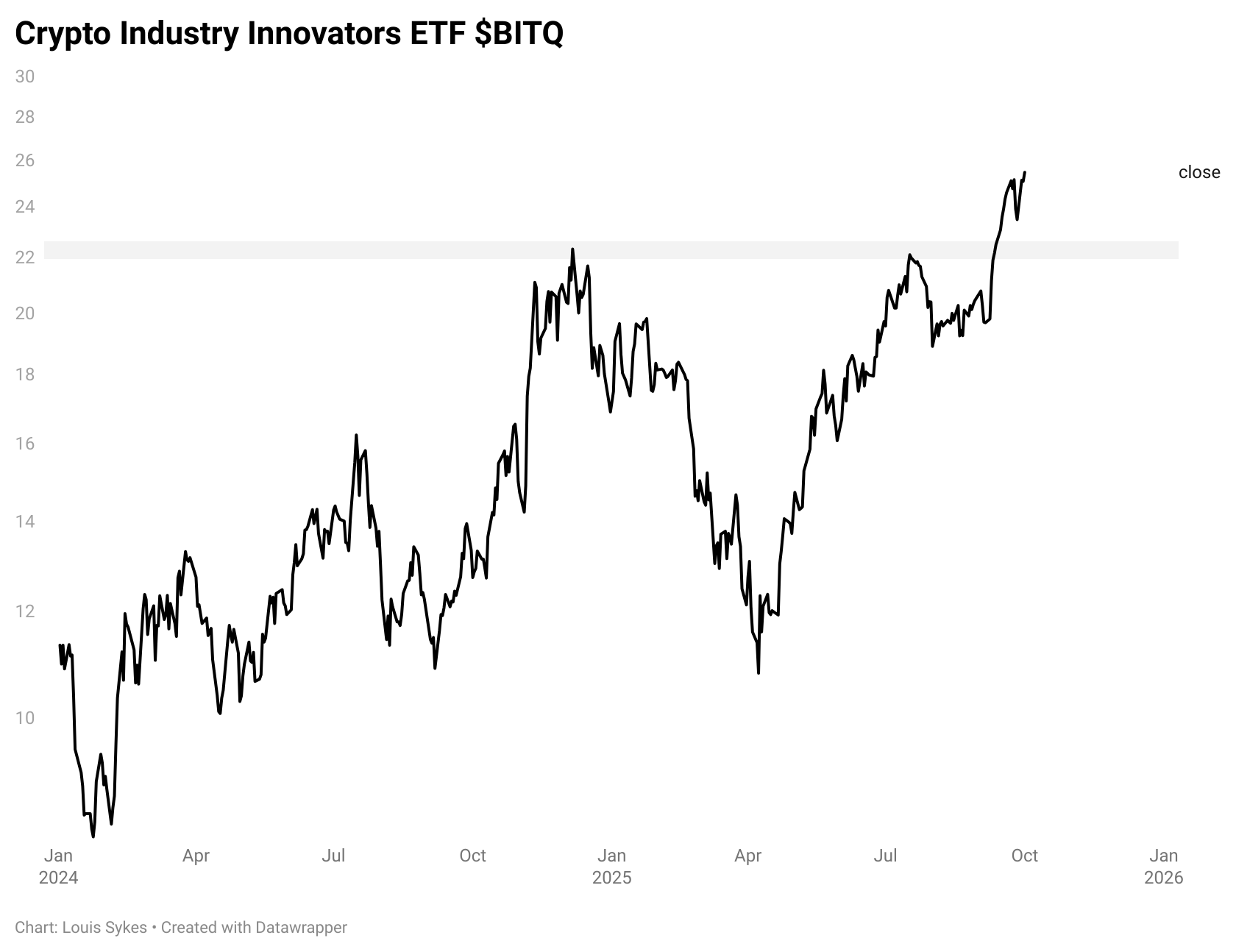 Crypto had a strong day, with Bitcoin $IBIT up 2.70% and Ethereum $ETHA up 4.10%. The crypto stocks followed suit, extending their breakouts. Bitwise’s Crypto Industry Innovators ETF $BITQ - which holds names like Coinbase, IREN Ltd, and Strategy - is pressing toward new four-year highs.