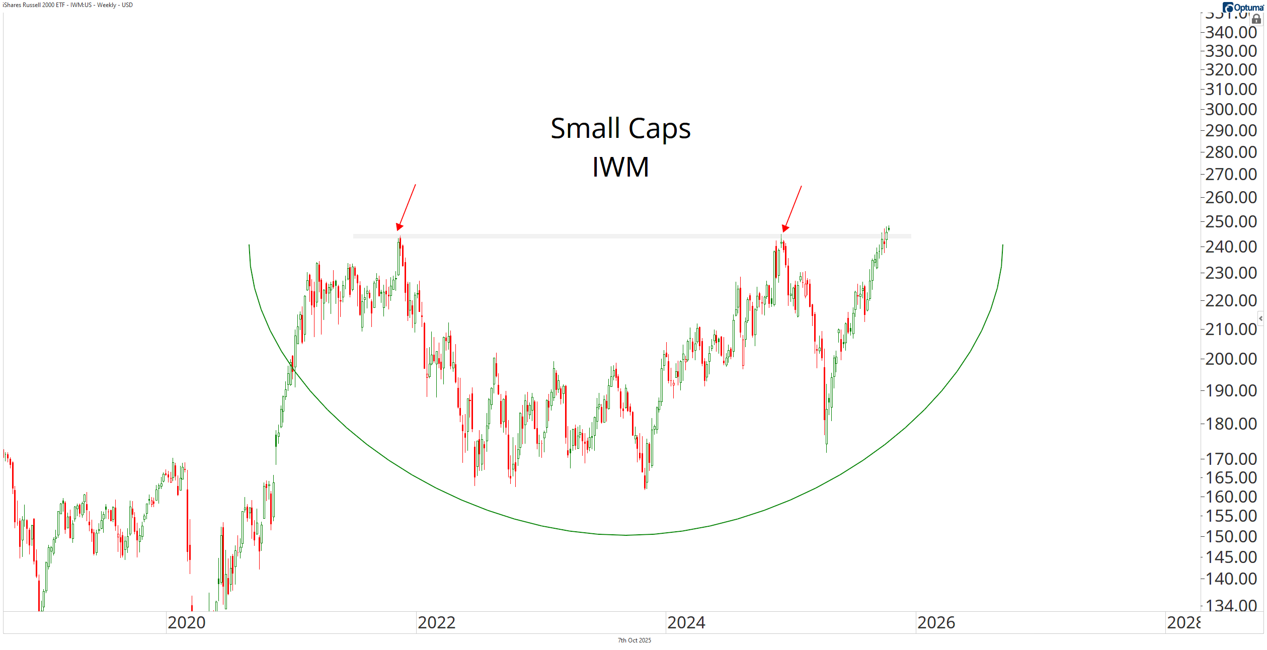 The most telling example of that strength comes from small-caps — by definition, the world’s weakest companies, the ones that haven’t yet graduated into large caps. Yet here they are, making new all-time highs. When even the laggards are leading, it tells you everything you need to know about the kind of market we’re in.