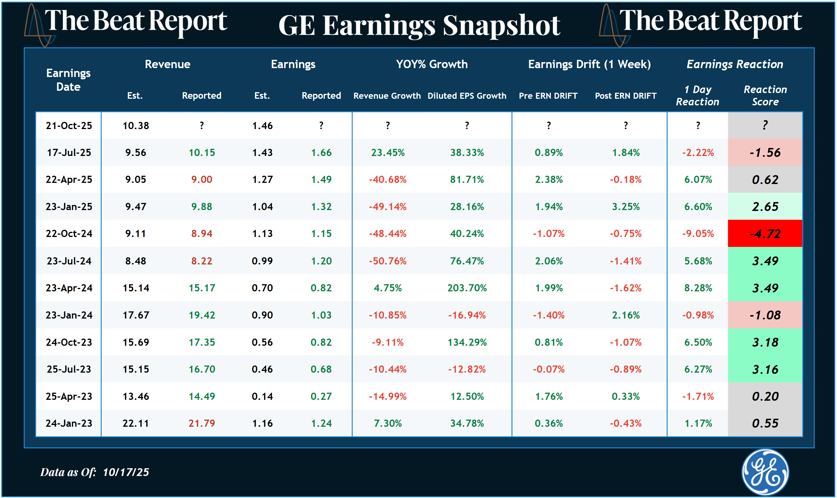 And if GE rallies after its report on Tuesday, we expect its aerospace & defense peers to do the same. As you can see on the earnings calendar above, RTX $RTX and Lockheed Martin $LMT also report before Tuesday's opening bell.