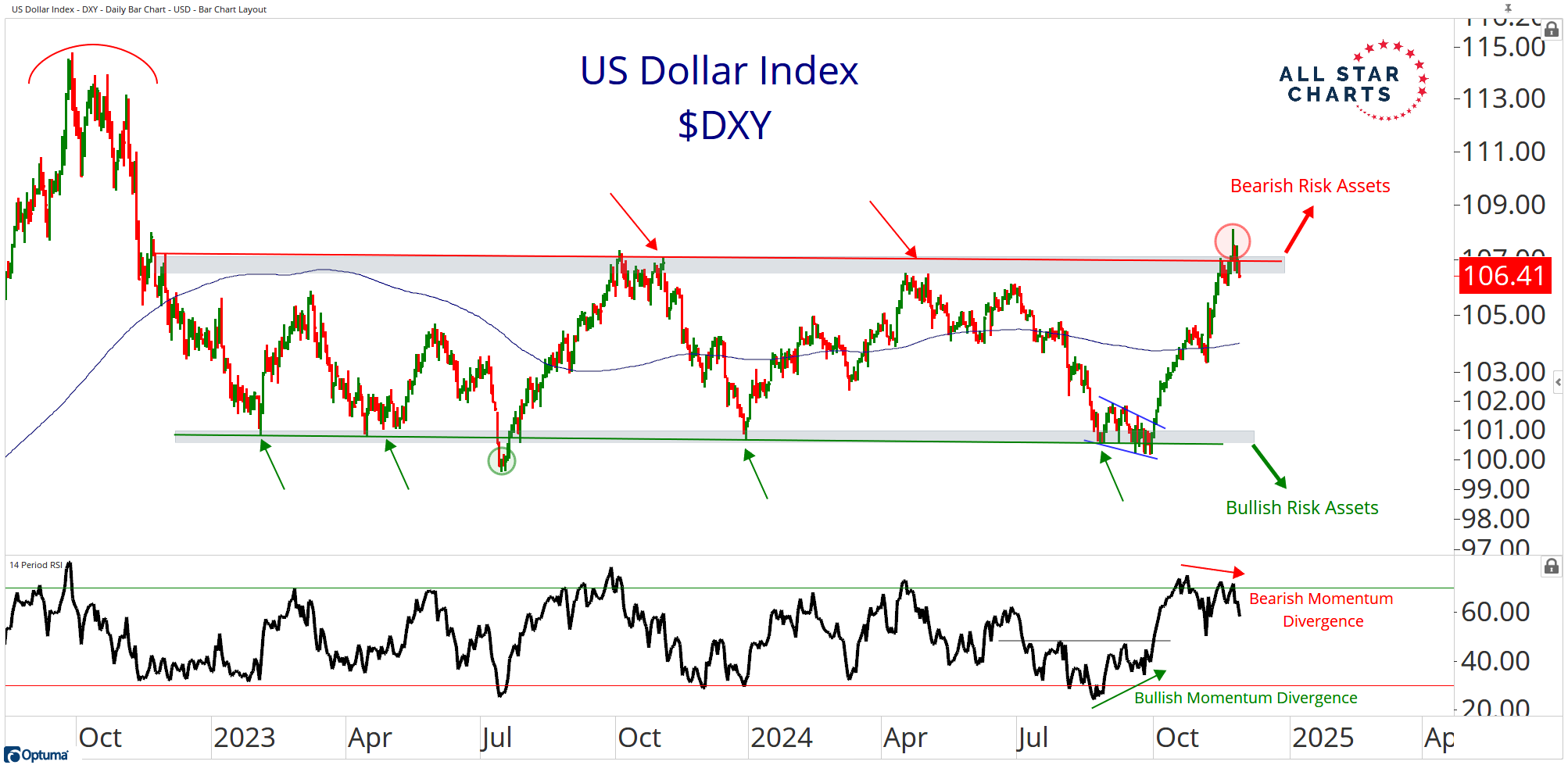 The US Dollar Index $DXY is sitting at the top end of the range it’s been stuck in for the past two years, and the stage is set for a move lower.