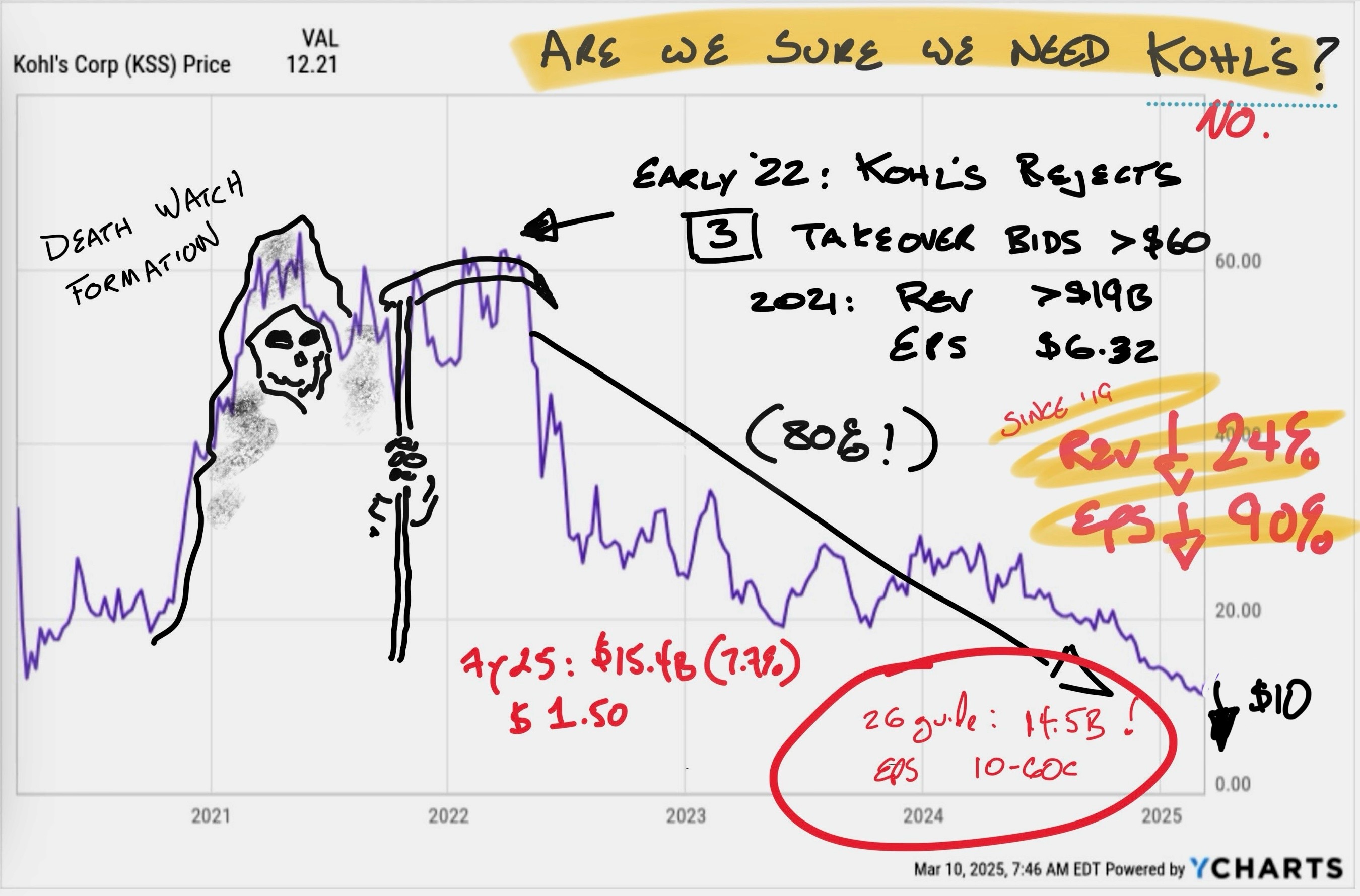 Almost every retailer has told us February was soft, at best. For a retailer at Kohl's it only takes a drop of a few percentage points of selling to trash a whole year. For a good company like Dick's, which also reported this morning a consumer drop-off leads to a little good old-fashioned prudence when it comes to forecasting this year. Results were fine but the stock isn't going to go up on "fine". Not in the tape.